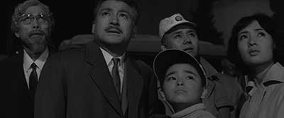 GAMERA est tout de même un peu ambigu. Le monstre serait incompris ! C’est l’un des personnages principaux, Toshio, qui le dit. Là où le GODZILLA original était centré sur des adultes, une partie de l’intrigue de GAMERA met en scène un jeune enfant passionné par les tortues. Ce dernier envisage même que le monstre géant serait sa propre petite tortue qu’il a été obligé d’abandonner et qui aurait grandi démesurément. Si cela est évoqué durant un dialogue, cela reste probablement plus une idée métaphorique. L’enfant projette son empathie vers la tortue géante et prend des risques pour la suivre. L’idée pourrait être touchante. Ce n’est pas vraiment le cas, les situations semblent souvent un peu ridicules. On retrouve ici l’aspect naïf de la plupart des films de monstres géants japonais. Les rebondissements ou réactions des personnages sont par moments absurdes. Par exemple, alors que l’enfant ne veut pas que l’on fasse du mal à la tortue géante, il est heureux que celle-ci soit envoyée dans l’espace et dans un endroit où elle pourrait très bien mourir. Pour apprécier GAMERA, il faudra donc se rattacher à nos âmes enfantines plutôt qu’à notre esprit cartésien. De même, le monstre géant se montre un peu schizophrène. Cela ne le dérange pas d’éradiquer des humains mais il prend le temps de sauver un enfant. On retrouvera ce genre de comportements étranges dans les films suivants…
