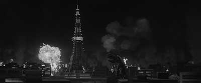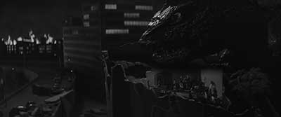 Avant GAMERA, la Daiei avait déjà proposé ponctuellement quelques œuvres «Fantastiques» au ton adulte (THE INVISIBLE MAN APPEARS, LES CONTES DE LA LUNE VAGUE APRÈS LA PLUIE…). En 1964, il est décidé de produire un film mettant en scène une horde de rats géants. Ce projet tournera court pour des raisons sanitaires car les vedettes du film, les rongeurs, sortaient de l’enceinte du tournage au grand dam du voisinage. Hors de contrôle le film est annulé avant que cela ne tourne à la catastrophe. Récemment, un film s’est intéressé à cette curieuse histoire cinématographique : NEZURA 1964 de Hiroto Yokokawa. Des cendres du film avorté en 1964 va naître GAMERA. Des décors miniatures de villes sont déjà fabriqués ou en cours de fabrication. La mise en chantier d’un film de monstre géant est donc aussi l’opportunité de faire une économie sur une partie des décors. Une dizaine d’années après le premier GODZILLA, on propose une structure narrative assez proche de l’original. Une créature venue de la nuit des temps sort de son sommeil à cause d’une explosion nucléaire. La bestiole provoque des destructions pendant que des militaires et des scientifiques cherchent à résoudre ce très gros problème. Les scientifiques finissent par proposer un plan élaboré pour mettre un terme à la menace. Ce sont les grandes lignes du GODZILLA de 1954 mais aussi celles du GAMERA de 1965. Entre ces lignes, on remarque tout de même des différences notables. Dès le départ, GAMERA est présenté comme une créature mythologique liée à la légende de l’Atlantide. La tortue géante est réveillée par une explosion mais elle ne fait pas l’objet d’une mutation liée au nucléaire. Durant l’antiquité, et même avant, elle dispose déjà de ses pouvoirs. L’ombre de la menace radioactive est évoquée mais cela n’est absolument pas central. Là où GODZILLA exprimait la peur du nucléaire sur un ton assez sombre, GAMERA s’en écarte et adopte une ambiance beaucoup moins lourde. Alors, bien sûr, cela n’empêche pas la tortue de détruire des bâtiments et autres infrastructures menant inévitablement à des pertes humaines. Dans le film, on nous montre même une séquence où le monstre élimine un parterre d’humains soustraits à la vie (l’image passe soudain en négatif) !