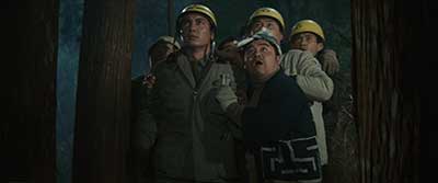 En dehors de ce drame social, le film nous ramène un groupe de scientifiques, experts et militaires qui vont essayer de contrer l’énorme menace. Surtout que Gyaos a tendance à apprécier le sang humain. En contrepoint de tous ces angles de vue adulte, on trouve de nouveau la vision d’un enfant. Le film ne donne d’ailleurs pas une image très glorieuse des adultes. Ils sont, soit d’une grande cupidité, soit bien peu malins. C’est probablement le gros défaut de GAMERA CONTRE GYAOS. L’enfant se montre très souvent plus intelligent que les scientifiques, jusqu’à leur donner les solutions à leurs problèmes. Evidemment, cela flatte le jeune public mais cela donne surtout un côté assez infantile à l’ensemble. Soyons sympas, l’enfant présente ici une innocence naïve qui s’écarte des malversations adultes.