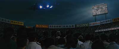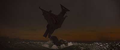 Notons qu’une nouvelle fois, comme dans le premier GAMERA, les monstres ont des attitudes ambivalentes. Gyaos va ainsi sauver l’enfant alors qu’on nous dira clairement qu’il a tendance à s’abreuver de sang humain. Pendant un court instant, on se demande s’il compte le garder comme en-cas pour plus tard. L’enfant finit sur le dos de Gamera. Cela donnera une scène de vol assez surprenante, du type L'HISTOIRE SANS FIN pendant laquelle l’enfant exalté «chevauchera» la tortue durant quelques minutes. La technique de vol de la tortue change pour éviter que son passager ne soit éjecté et ne meure, démontrant une bienveillance inhabituelle de la part de Gamera. Cela pose un problème de cohérence puisque jusqu’ici Gamera tournoyait sur elle-même à grande vitesse pour se déplacer dans les airs, comme le savent ceux qui ont vu les films précédents.