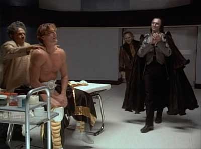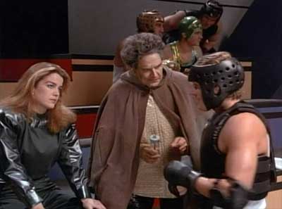 Pas de tournage en extérieur, ARENA se cantonne en majeure partie à une station spatiale habitée par une multitude de personnages. C’est aussi une sorte de carrefour dans l’espace. Cette idée, on la retrouve dans les séries télévisées STAR TREK : DEEP SPACE NINE et BABYLON 5 qui n’arriveront qu’une poignée d’années plus tard. Il est peu probable que ARENA ait été une source d’inspiration bien que l’on y trouve des comédiens qui œuvreront plus tard sur ces deux séries : Marc Alaimo, Armin Shimerman et Claudia Christian. Plus étonnant encore, le personnage interprété par Armin Shimerman tient un bar dans la station alors qu’il sera aussi tenancier d’un débit de boisson dans STAR TREK : DEEP SPACE NINE. Des histoires de stations spatiales peuplées d’extraterrestres hétéroclites, il en existe beaucoup dans la littérature de science-fiction et, bien évidemment, dans la série STAR TREK originale. On y trouve déjà un épisode intitulé «Les enchères de Triskelion» où quelques membres de l’équipage sont capturés et forcés à se battre. Et, bien après ARENA, on retrouvera une arène de combats inter-espèces extraterrestre dans l’épisode «Tsunkatse» de STAR TREK : VOYAGER mettant en scène, entre autres, The Rock (Dwayne Johnson) ! Toutefois, le sujet n’est finalement pas si exploité que cela et cela pourrait donner à ARENA un aspect surprenant et intéressant…