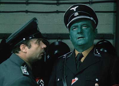 Déjà évoqué dans ZABIL JSEM EINSTEINA, PANOVE!, le thème du voyage dans le temps propose de changer l’Histoire. Dans le film de 1970, cette opération a pour but d’influencer de manière bénéfique le futur. En éliminant Albert Einstein dans le passé, il serait «possible» d’éviter l’apocalypse nucléaire. Dans le film réalisé par Jindrich Polak, toujours scénarisé par Milos Macourek et Václav Vorlícek, la modification du passé prend une autre tournure. En effet, un complot fomenté par des nazis vise à changer le cours de la Seconde Guerre Mondiale. Cette idée de la réécriture de l’Histoire par une dictature, c’est clairement ce que vivent les résidents des pays sous régime communiste. Ainsi, les manuels d’Histoire sont réécrits, les photographies officielles sont retouchées, les archives officielles sont falsifiées. Si dans «1984», George Orwell disait «Qui contrôle le passé contrôle l’avenir. Qui contrôle le présent contrôle le passé», cet adage n’est pas que le reflet d’une œuvre de fiction. On le voit encore de nos jours où des dirigeants jouent sur les mots ou mentent éhontément pour atteindre leurs buts. Dans le film de Jindrich Polak, la métaphore apparait des plus évidentes avec des personnes qui veulent imposer une idéologie en changeant le passé et donc le présent. En prenant des nazis comme complotistes, les scénaristes ont passé la censure.  D’autant plus que les nazis du film sont des personnages particulièrement bêtes offrant des possibilités comiques mais aussi une critique ironique du totalitarisme.