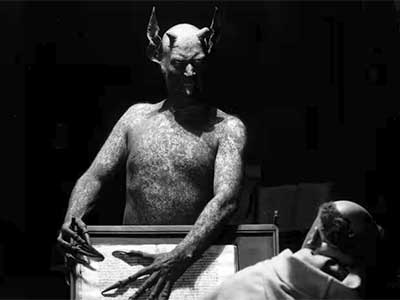 Et pour cause, HAXAN n’est pas une fiction. Le film est une sorte de thèse ou de documentaire à propos de la sorcellerie. S’étant intéressé à la médecine, il est probable que le réalisateur ait vu à cette période des «Kulturfilms» allemands, des films scientifiques qui, entre anatomie, biologie et pathologies, proposaient de voir réellement ce qui était explicité auparavant seulement en théorie dans les livres. Justement, Benjamin Christensen se serait plongé dans de nombreux ouvrages, récits de procès de sorcellerie et autres documents historiques pour préparer avec un grand sérieux son sujet. En l’état, HAXAN n’est pas un film d’horreur mais une évocation des croyances au sujet de la sorcellerie et des liens que l’on peut établir avec la superstition et les maladies mentales. Parler de sorcellerie, c’est le plus souvent approcher le thème de la religion. Affirmer que le diable est une superstition mène à mettre la religion dans le même sac. Et cela fait partie des raisons pour lesquelles HAXAN a été perçu comme blasphématoire dans la plupart des pays. L’évocation des chasses aux sorcières par des membres du clergé pas tout à fait nets et prompts à la torture, a fini de donner à HAXAN un ton anticlérical. Car si le film démarre sur un aspect historique à base d’images de gravures et de textes, petit à petit, il propose des mises en situation de ce qui aurait pu arriver dans le passé. On peut ainsi y voir une tranche de vie d’une sorcière dans son antre, un sabbat avec le diable (interprété par le réalisateur lui-même) ou encore un procès mené par des hommes d’Eglise aux pratiques douteuses. Ceux qui combattent les sorciers et les sorcières ne sont pas épargnés, bien au contraire ! Pour illustrer son propos, le cinéaste n’hésite pas à proposer de la nudité ou encore des scènes de tortures. Clairement, HAXAN expose l’obscurantisme et lorsqu’il propose des visions fantastiques et diaboliques, c’est pour illustrer l’aspect hallucinatoire et irréel de ces croyances.